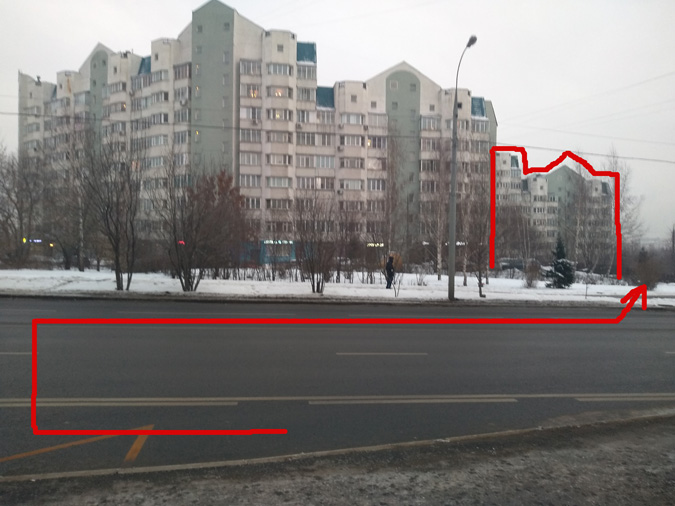 - Идем по этой дорожке к правому углу дома. Нужна сторона дома обратная от подъездов, для ориентира в этом доме так же сидят Мировые судьи района Митино.